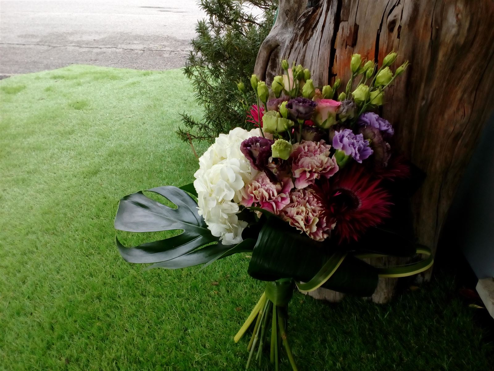 Composizione floreale in tronco